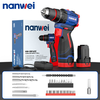 Nanwei 16v कॉर्डलेस ब्रशलेस प्रभाव ड्रिल 45n.m होम डाई मरम्मत 10 मिमी रैचट सेल्फ-लॉकिंग चक लिथियम आयन ड्रिल